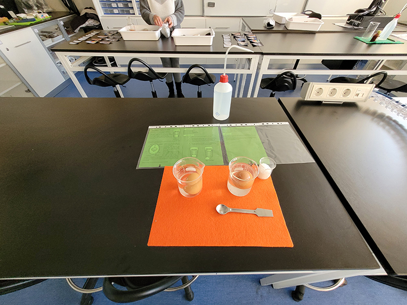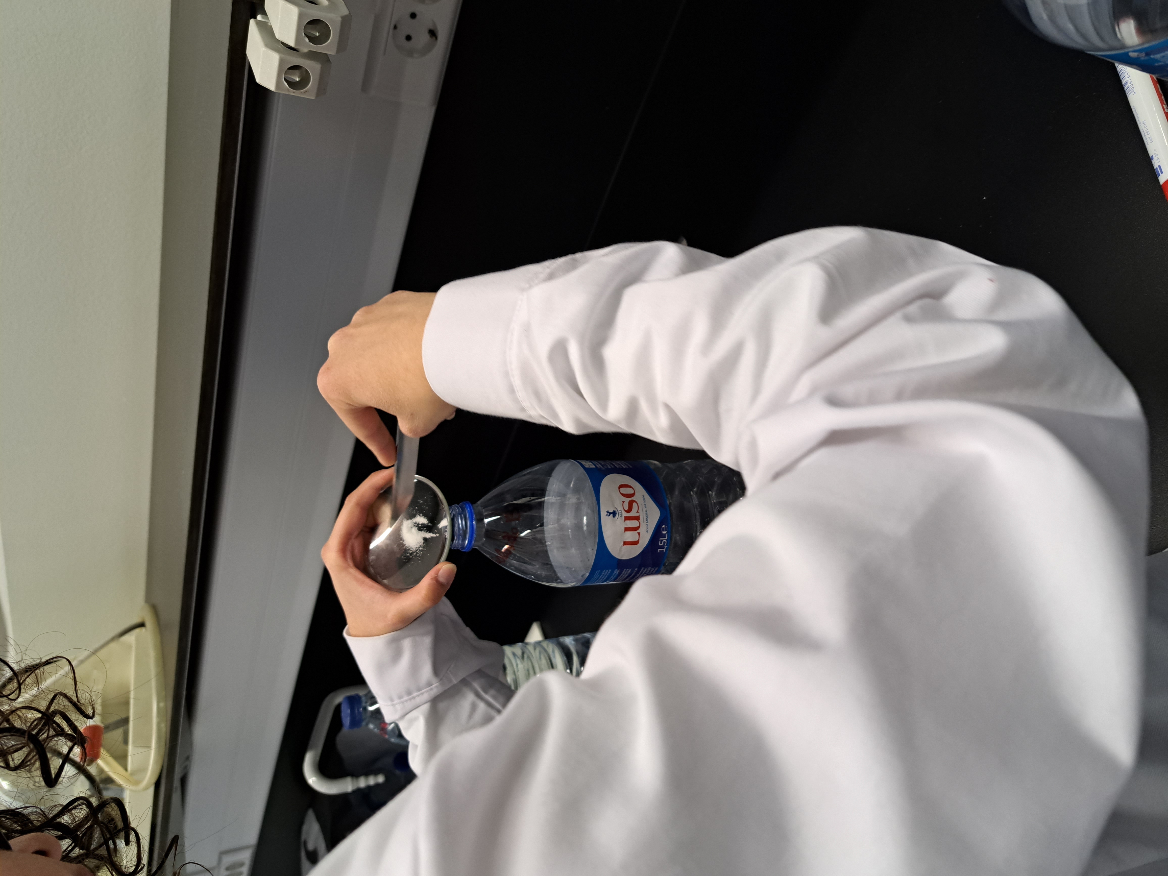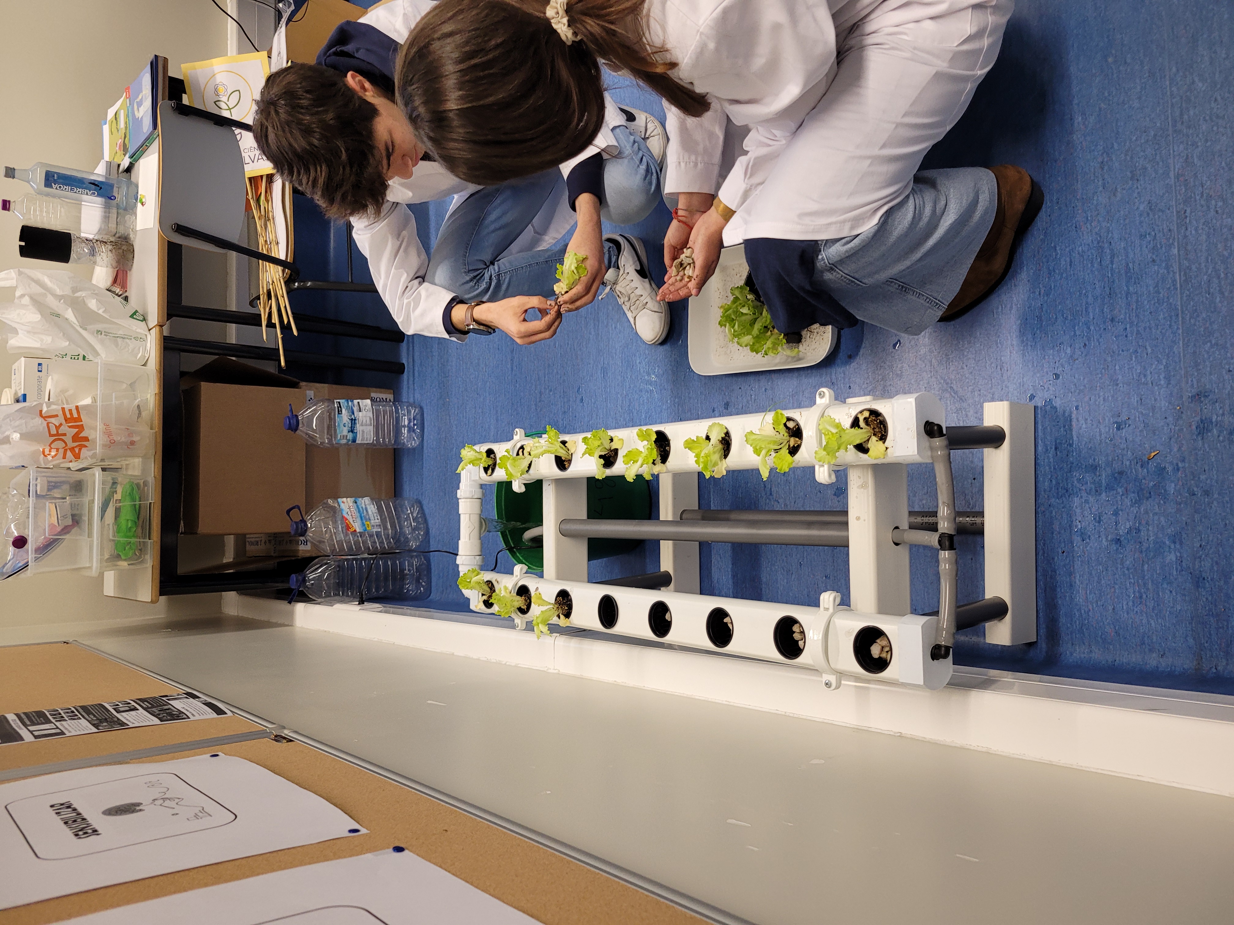 A solução nutritiva para a hidroponia foi preparada por alunos de uma turma de 11.° ano e a montagem das restantes partes do sistema ficou ao cuidado de dois alunos dessa mesma turma.