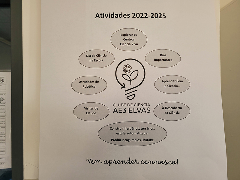 Divulgação das atividades dinamizadas pelo Clube de Ciência AE3Elvas no ano letivo 2022_2023