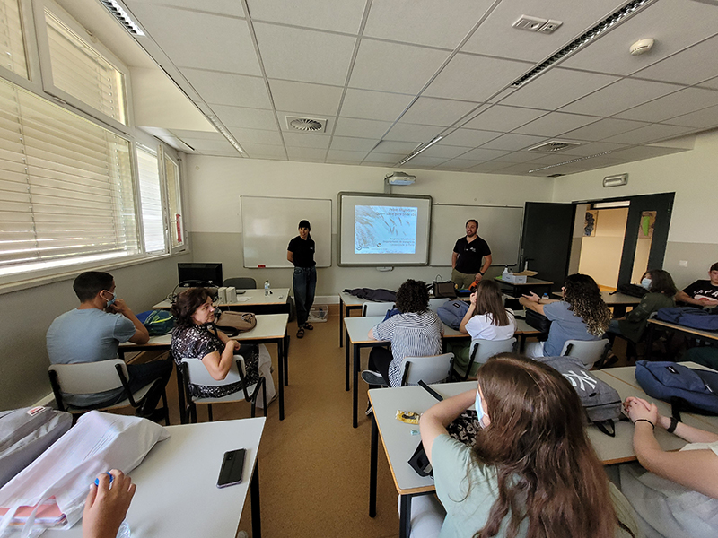Atividade dinamizada na Escola Secundária D. Sancho II (Agrupamento de Escolas n.° 3 de Elvas) pelos biólogos (investigadores da Universidade de Évora/MARE), Carlos M. Alexandre e a Joana Boa-Vida Portugal.