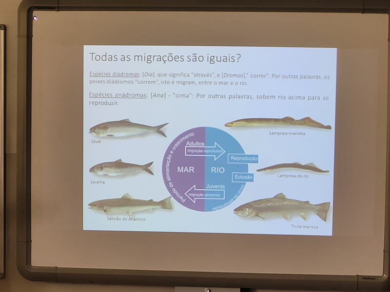 Nesta atividade os alunos das turmas 10.º C e 11.º A, do Curso de Ciências e Tecnologias, tiveram, durante a manhã do dia 11 de maio, oportunidade de conhecer melhor as principais espécies de peixes migradores que ocorrem em Portugal; tomar contacto com algumas técnicas utilizadas pelos investigadores no estudo destas espécies; compreender a importância da conservação deste importante recurso biológico; usar a técnica da radiotelemetria para detetarem a posição de "peixes simulados".
