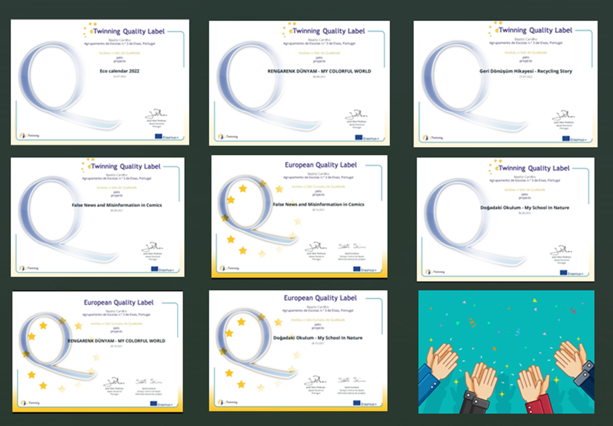 Assim sendo, receber o Selo de Escola eTwinning torna o nosso Agrupamento um excelente exemplo dos benefícios que se podem alcançar com o Twinning, comprovando o nosso dinamismo na implementação e promoção dos valores e da pedagogia eTwinning.