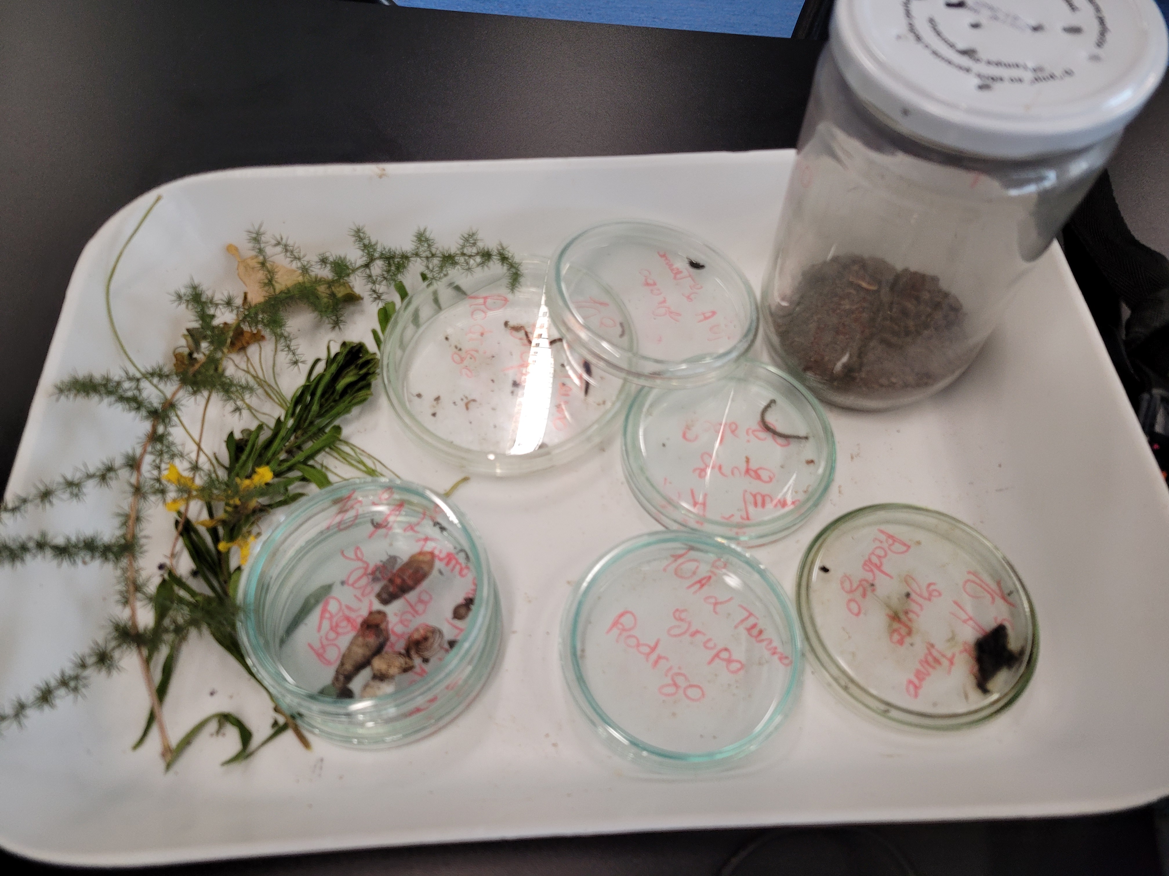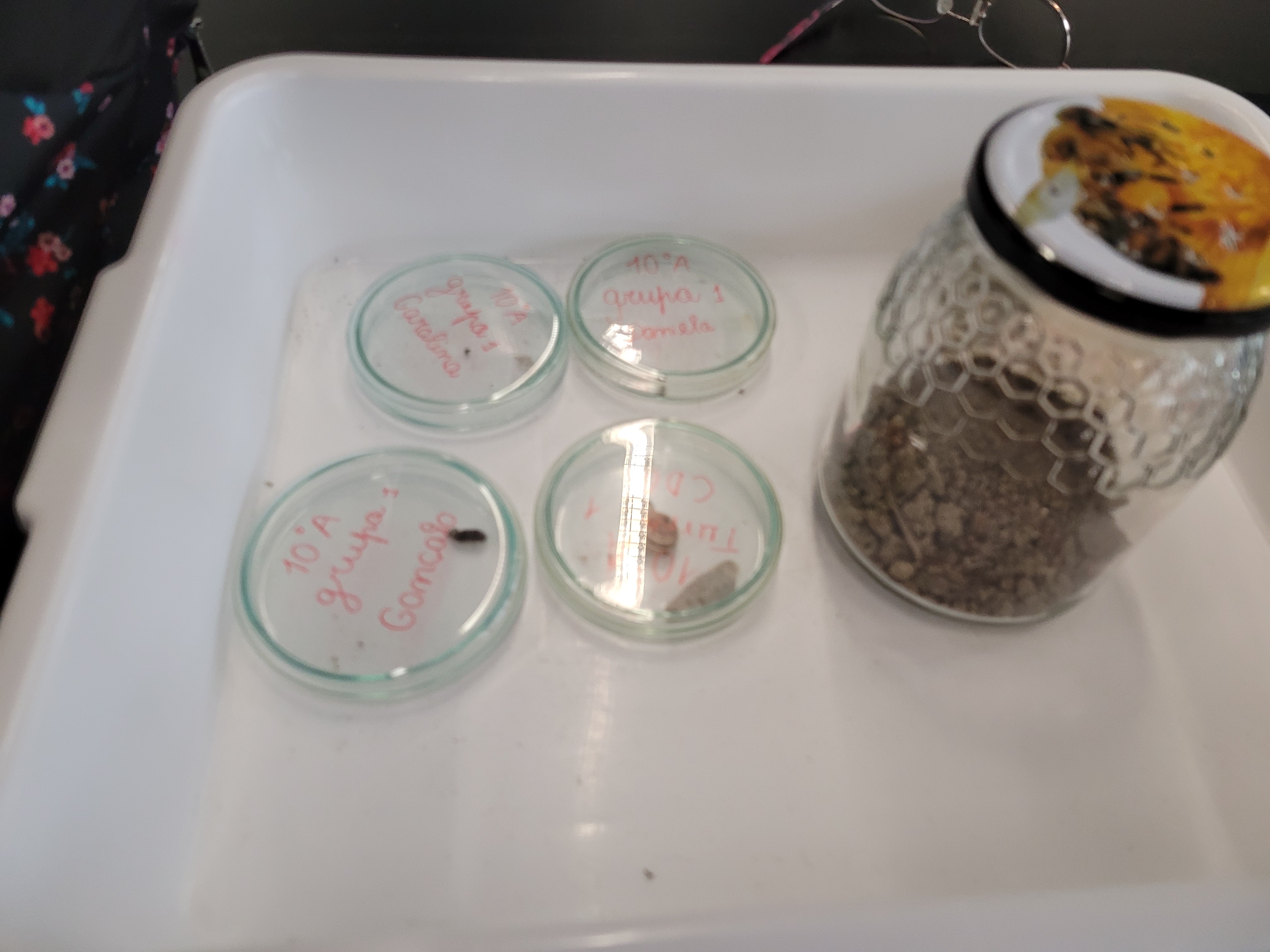 Os alunos da turma 10.º A procuraram encontrar, e identificar, animais presentes numa amostra de solo que recolheram durante uma aula de campo. De modo a detetarem a presença da fauna edáfica de menores dimensões, recorreram a um funil de Berlese construído por eles, com a ajuda do Professor Alcides Silva.