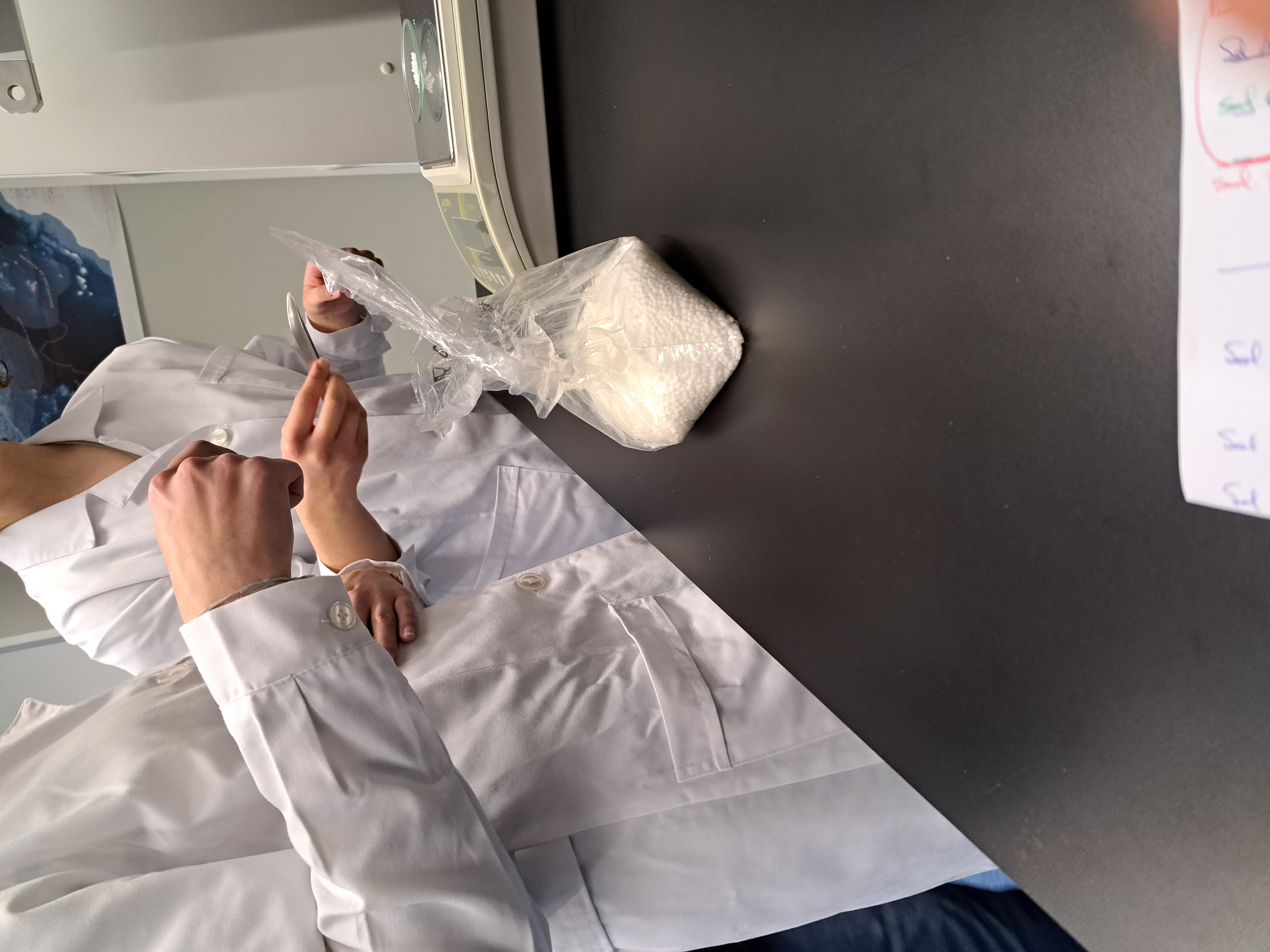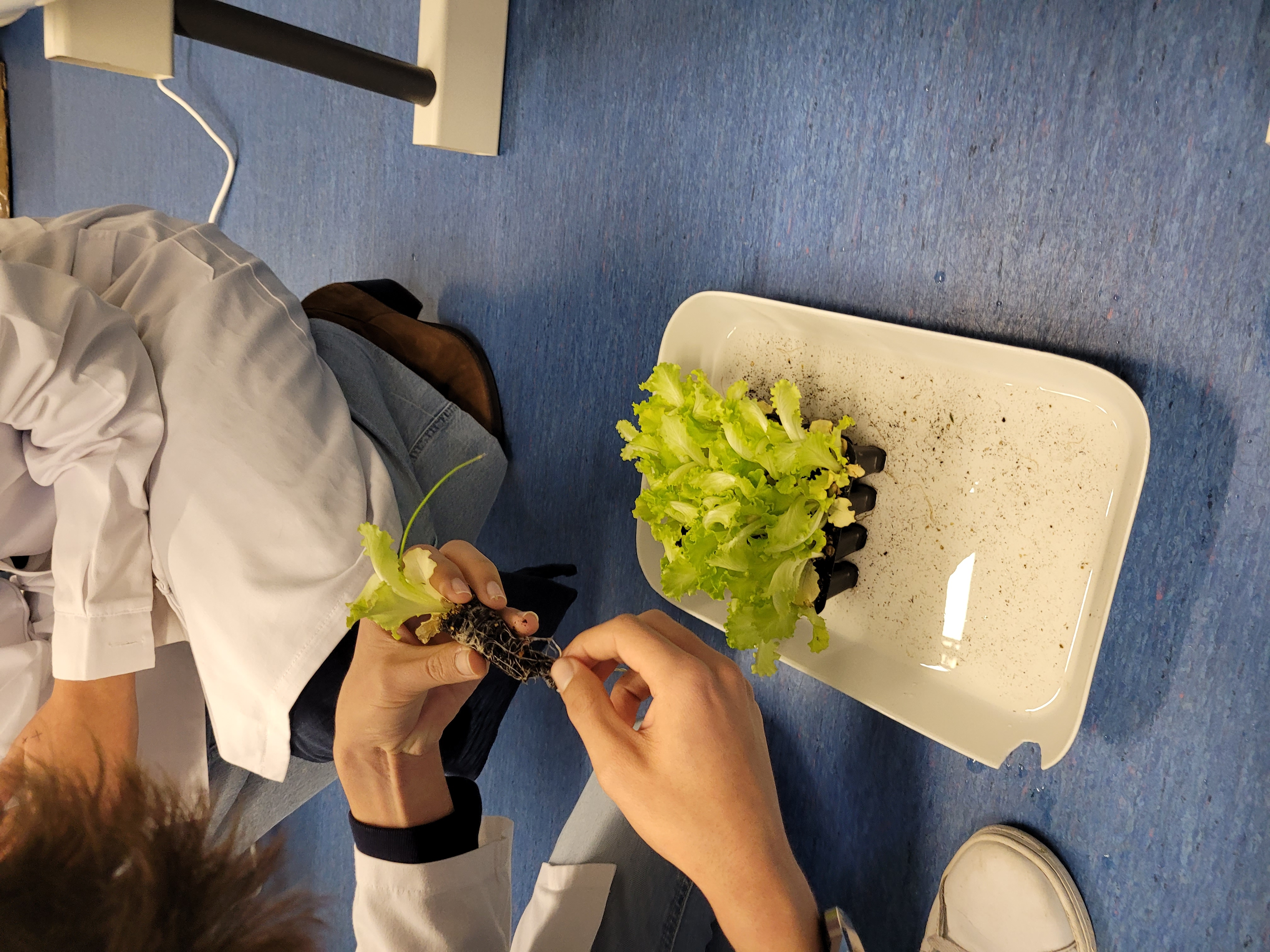 A solução nutritiva para a hidroponia foi preparada por alunos de uma turma de 11.° ano e a montagem das restantes partes do sistema ficou ao cuidado de dois alunos dessa mesma turma.